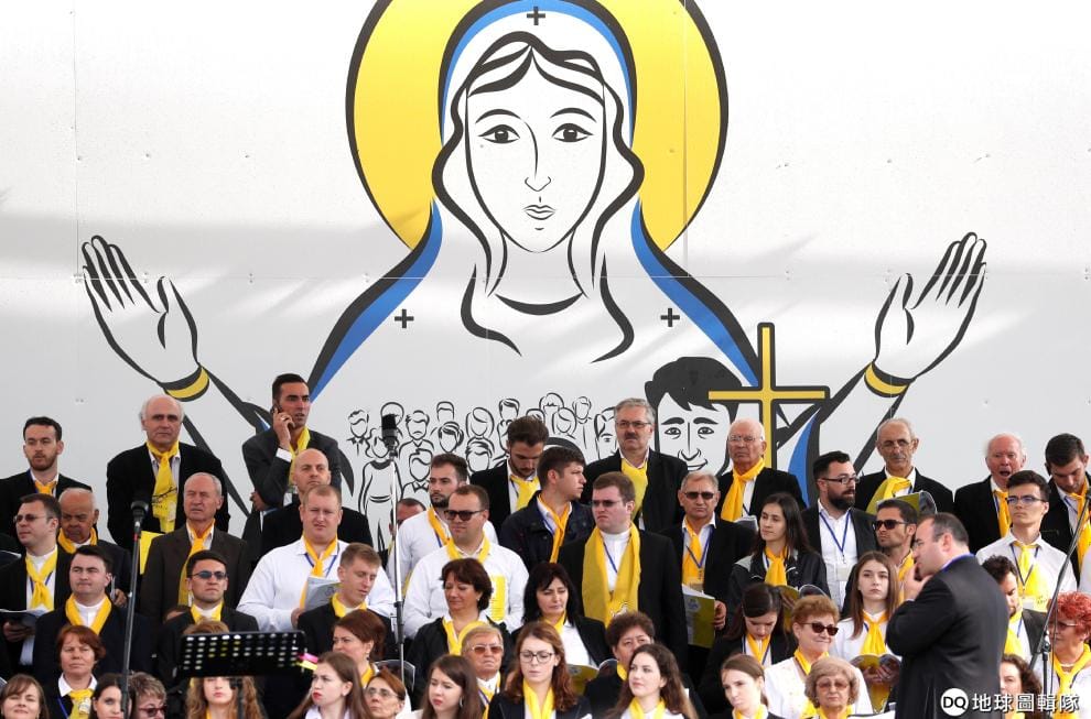 在羅馬尼亞第二大城雅西(Iasi),天主教徒齊聚一堂等待羅馬天主教宗方濟各(Pope Francis)的到來。