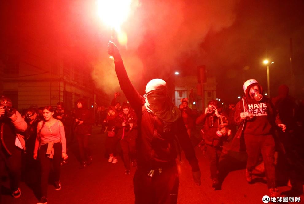 在智利立法首都瓦爾帕萊索(Valparaiso),民眾趁著智利總統皮涅拉(Sebastian Pinera)在國會演說的同時,在街頭上演一場反政府示威活動。