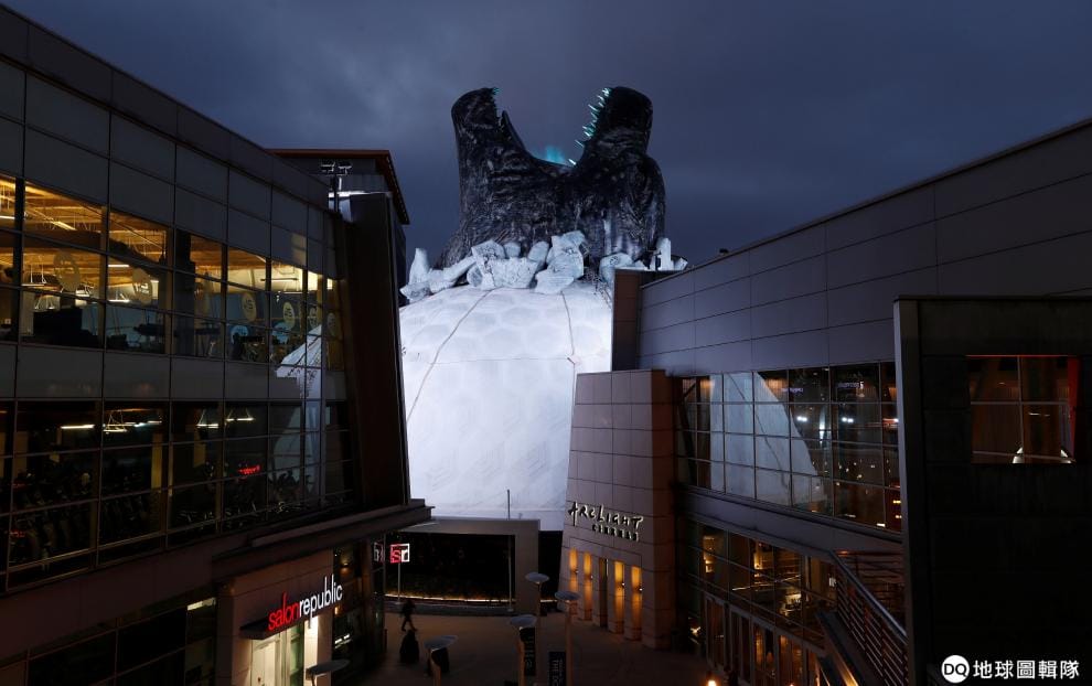在加州洛杉磯的圓頂電影院,片商為了宣傳最新上映的電影《哥吉拉 II 怪獸之王》,特地在電影院上方打造了破蛋而出的哥吉拉裝飾。