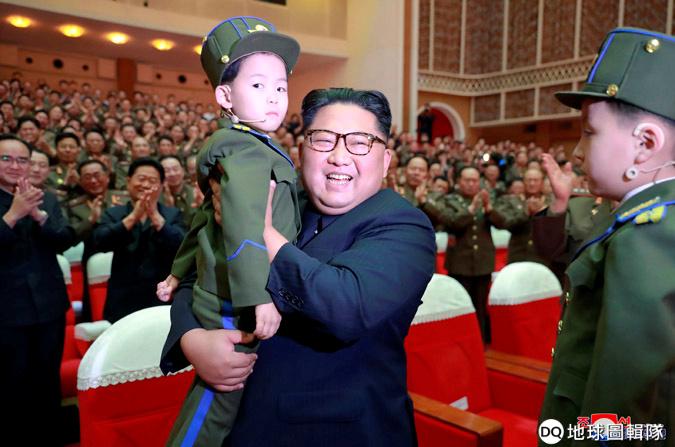 在朝鮮人民軍的家眷表演上,北韓領導人金正恩開心地抱起了參加表演的小朋友。