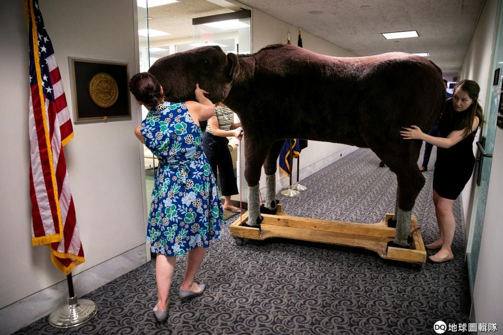 在位於華盛頓特區的國會山莊,國會議員的幕僚們忙著將一隻駝鹿的塑像塞進辦公室。