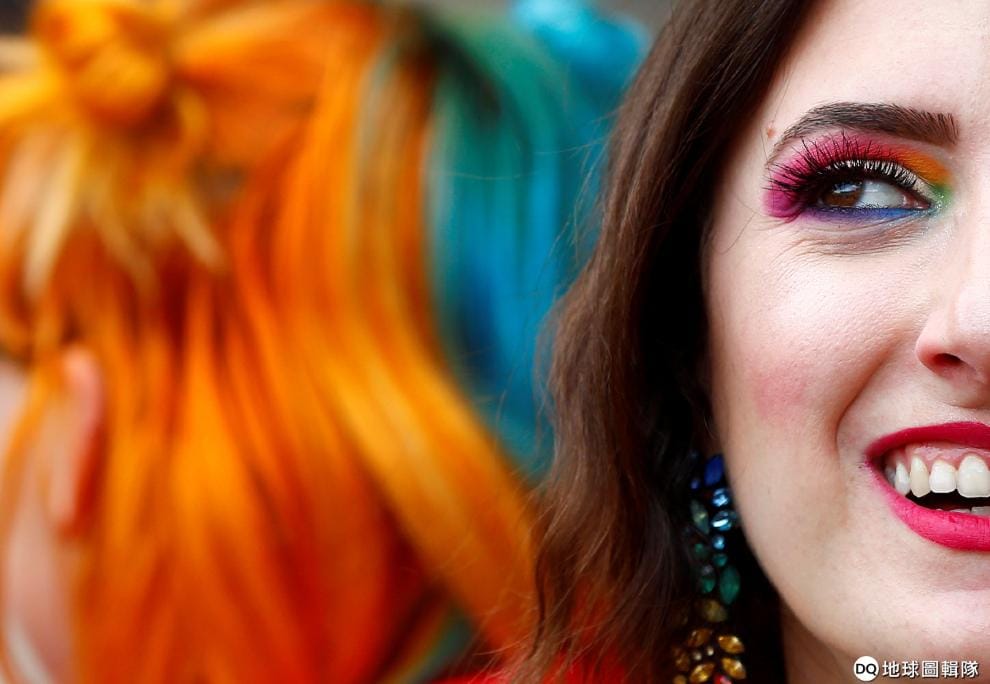 在驕傲遊行上,一名把彩虹元素戴上身的參加者恰好被攝影師捕捉了下來。