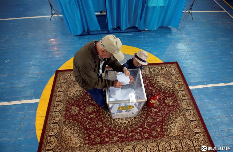 在城市阿拉木圖(Almaty)郊外的村落,一名男子替總統大選投下心中的一票。