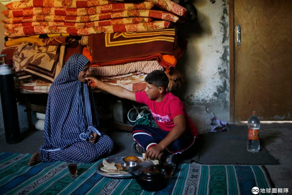 圖為 2013年,這對巴勒斯坦青少年於婚禮兩天後共享早餐。他們結婚時,男方 15歲,女方 14歲。