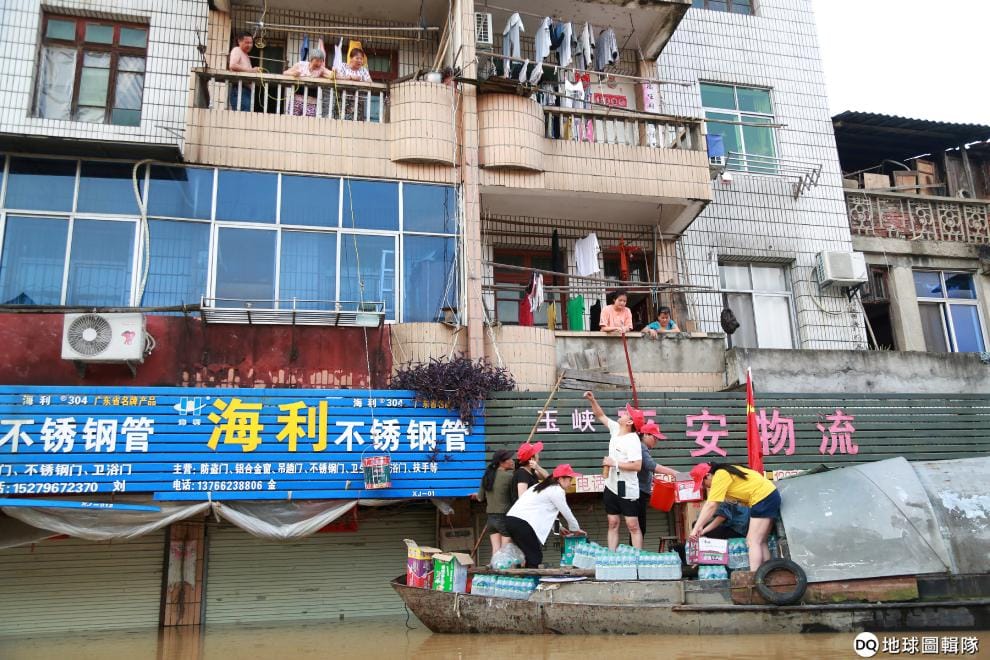 政府單位透過船隻的方式,將物資發放給被大水困住的人們。這幾天,中國南部連日暴雨讓各地 傳出淹水災情,有數十萬人的生計因此受到嚴重影響。