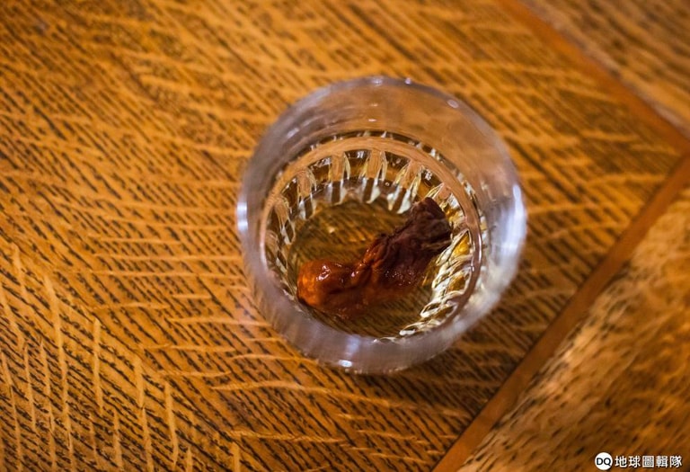 一份威士忌泡著一根經處理過的人類腳趾,這是加拿大道森市知名的「臭腳調酒」。