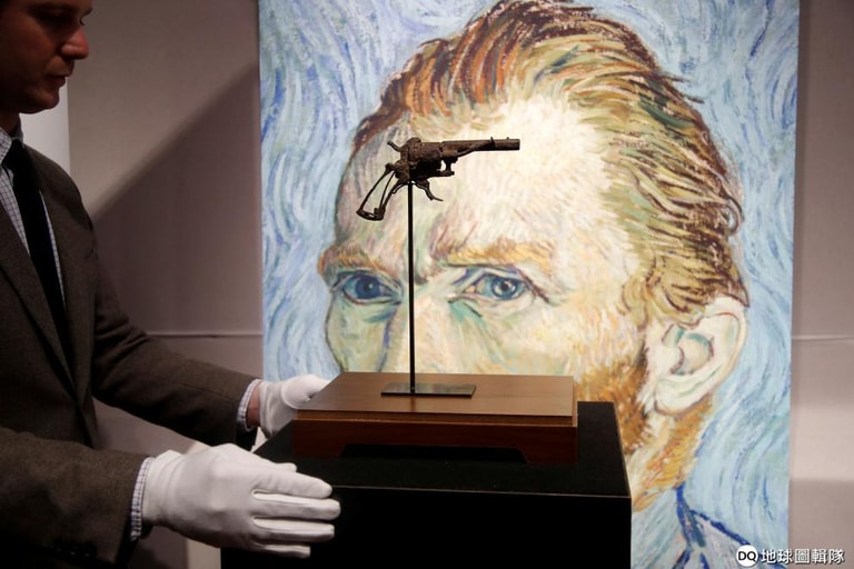 在法國巴黎的德魯奧(Drouot)拍賣行裡,一名工作人員正在準備各式各樣的拍賣品,畫面中的手槍,據稱是畫家梵谷(Vincent Van Gogh)用來自殺的那把槍。