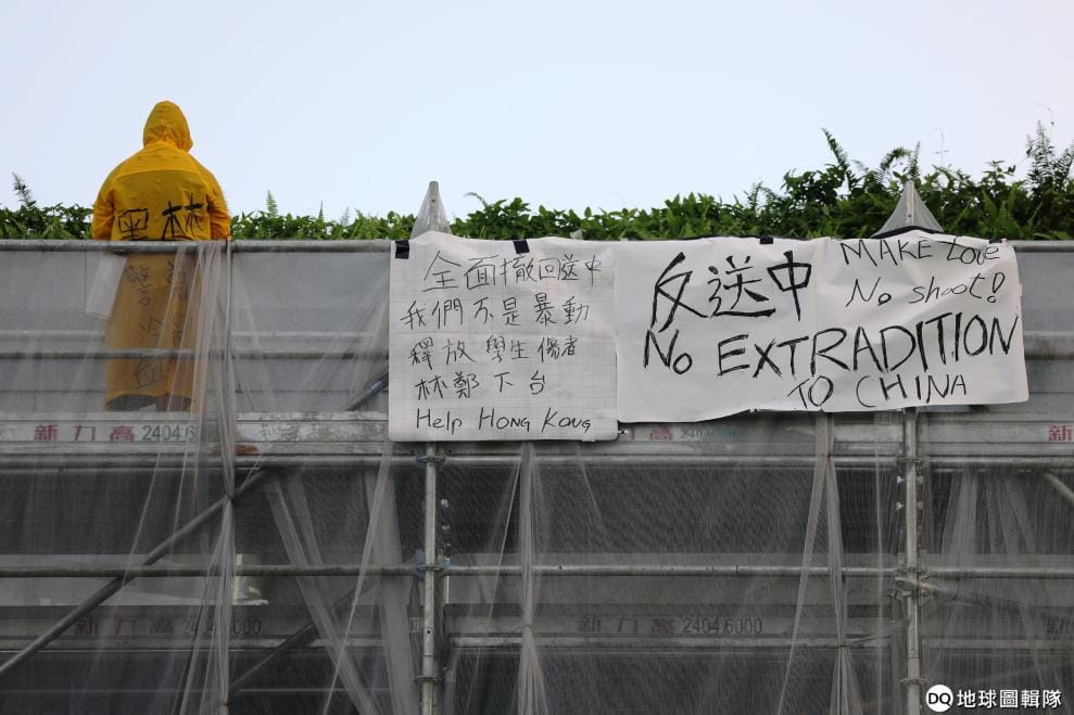 15號下午,一名身穿雨衣的男子在太古廣場平台掛上反《送中條例》的標語後,便站在平台與警消、談判專家僵持不下,現場也有民眾要該男子撐住、一起參加 16號的大遊行等等。然而,該名男子仍在當天晚上 9點多墜樓身亡。
