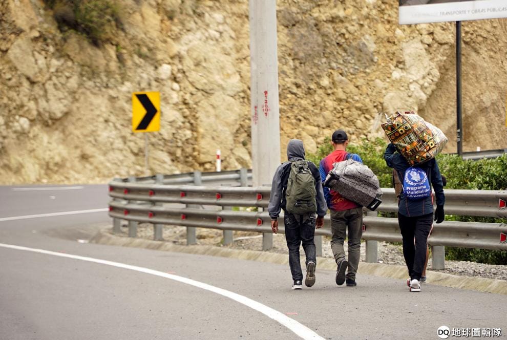 數名來自委內瑞拉的移民走在與哥倫比亞接壤的邊境城鎮圖爾坎(Tulcan),他們從委內瑞拉出發,依序經過哥倫比亞、厄瓜多,希望在最後可以落腳秘魯。《路透社》指出,這在南美洲是很受歡迎的一條移民路線。
