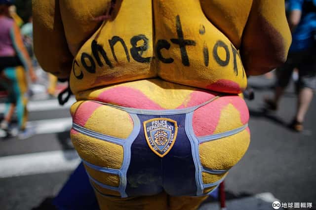 在紐約時代廣場街頭,不同身型、年紀的人裸身走上街,他們透過身上各式各樣的團結訊息,標誌出想消弭社會分歧的心情。