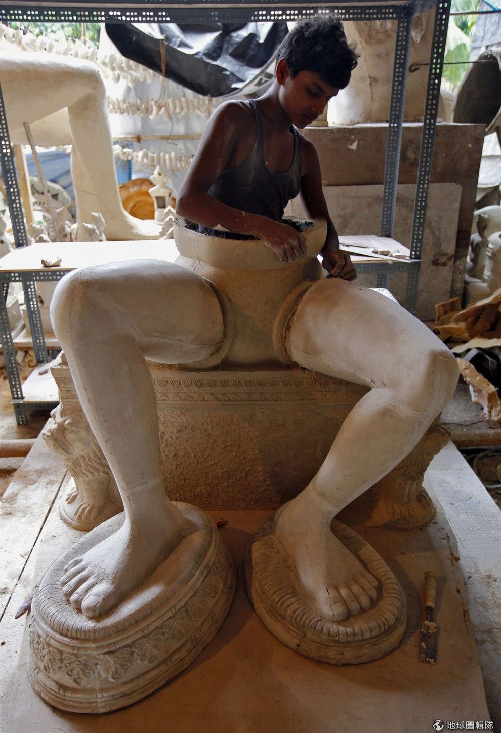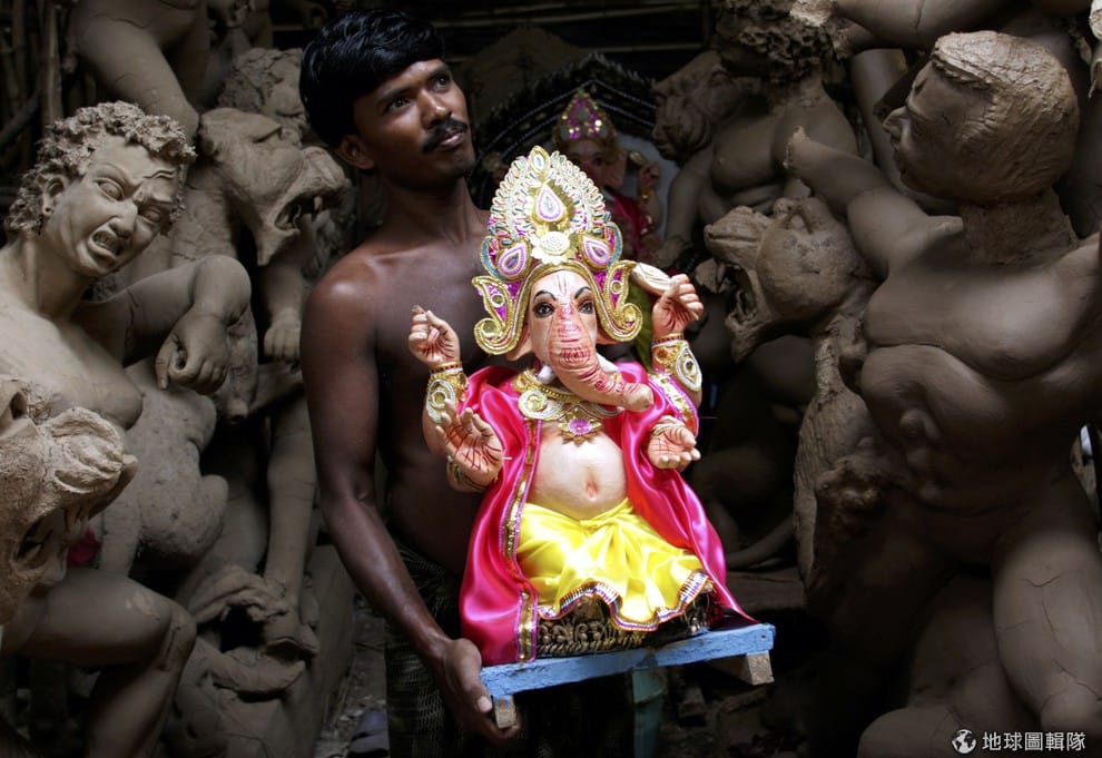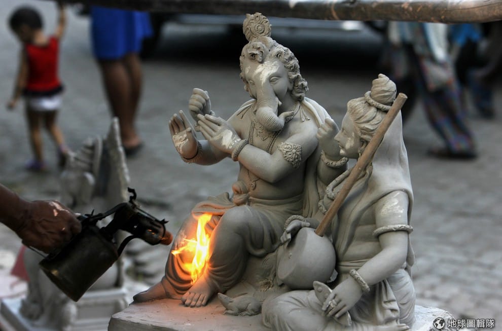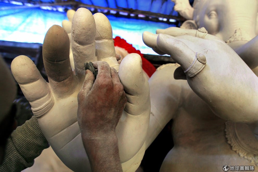 在象神節到來前幾個月,雕刻師傅就開始忙著製作一個又一個的象神雕像。