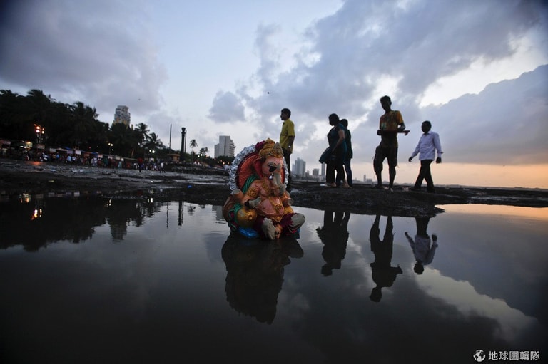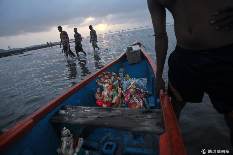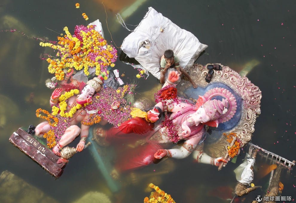 無數的象神雕像沉在水中,象徵著美好慶典的結束。