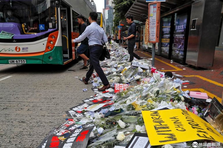 15號下午三點,香港特首林鄭月娥宣布無限期暫緩《逃犯條例》修訂,但並沒有如示威者所要求的表示要「撤回」修正草案;同一天晚上,一名男子在太古廣場平台掛上反送中標語,並在與警消人員僵持 5個小時後墜樓身亡。