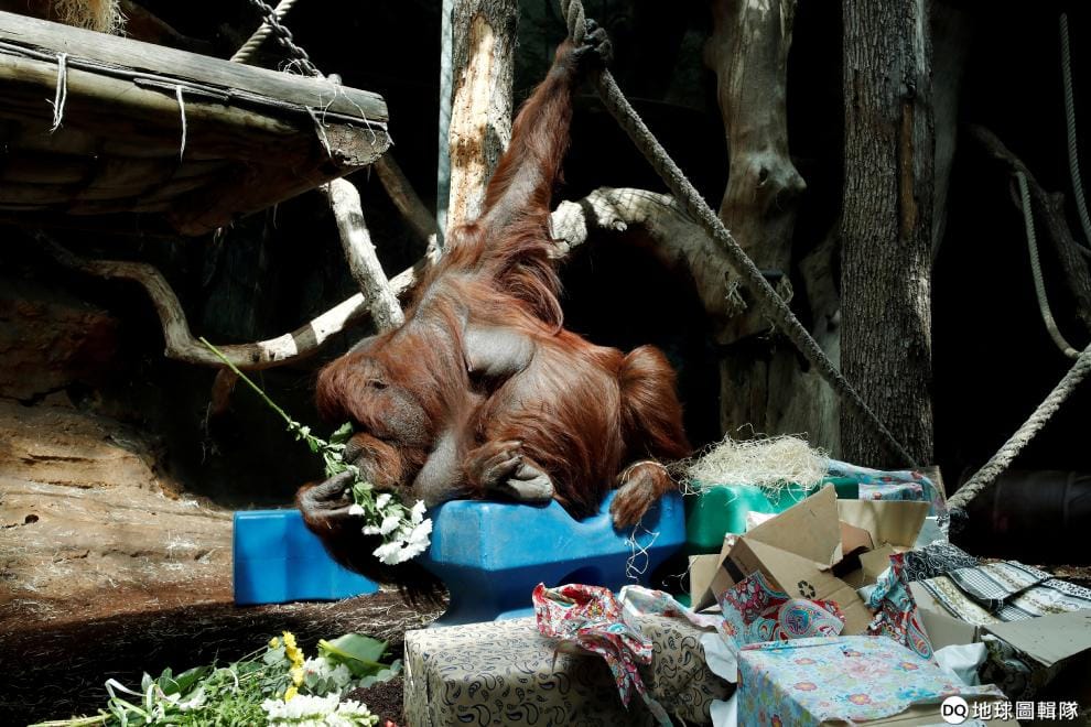 來到巴黎植物園附設的動物園裡,園方正在幫紅毛猩猩娜娜蒂(Nenette)慶祝牠的 50歲生日。