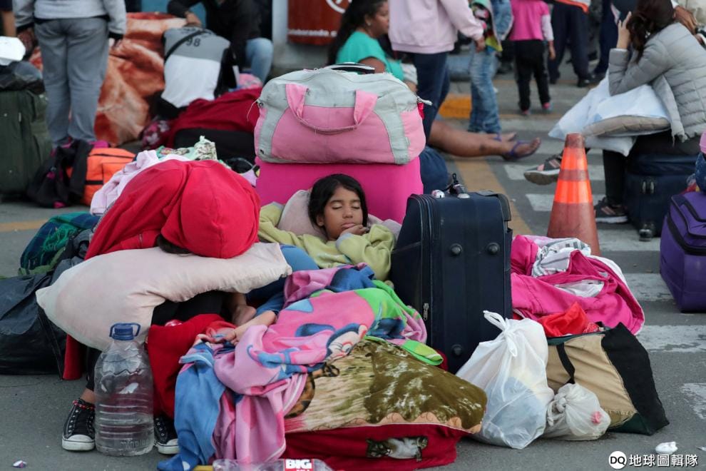 一名委內瑞拉孩童在「兩國邊境服務中心」休息。本月 15號,長期對委內瑞拉移民抱持開放態度的秘魯政府決定像智利一樣開始加強管制,要求所有委內瑞拉移民都要具備有效簽證與護照。