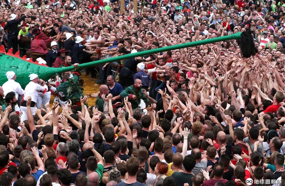 時逢一年一度的屠龍節(Doudou),人們紛紛聚集在城市蒙斯(Mons)共襄盛舉。畫面中只見象徵「好人」的人們,努力要贏過那隻象徵「邪惡」的綠龍。