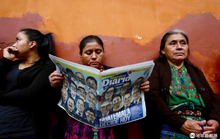 一名女子透過讀報打發排隊投票的時間。這幾天,瓜地馬拉正為總統大選舉辦第一輪投票。
