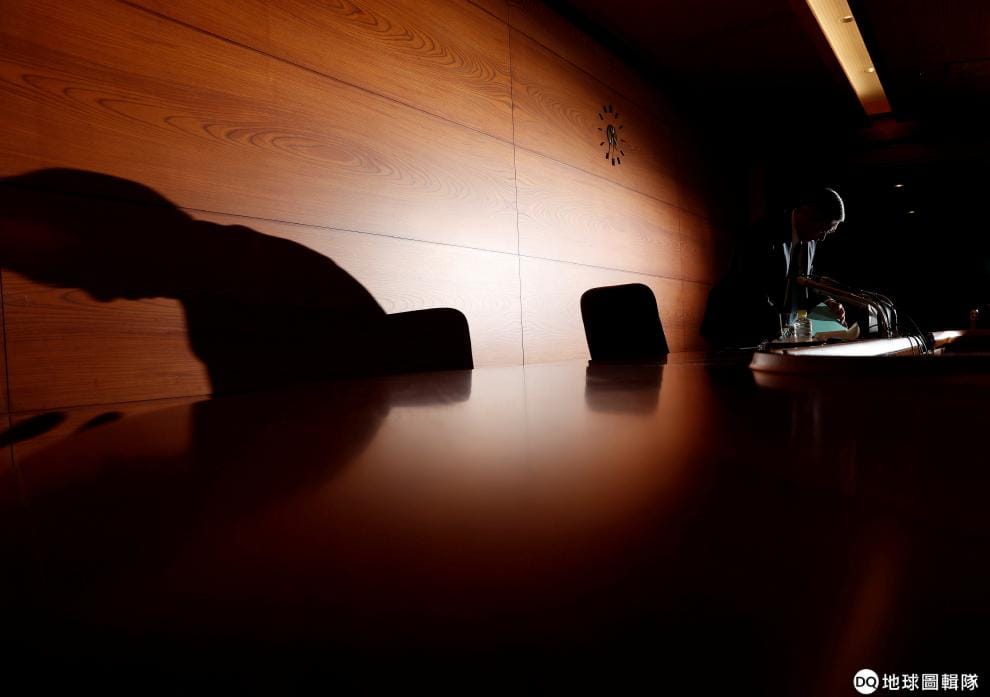 日本銀行總裁黑田東彥(Kuroda Haruhiko)在結束了記者會後鞠躬、準備離開現場。日前,日本銀行召開貨幣政策會議,決定要繼續維持貨幣寬鬆政策。