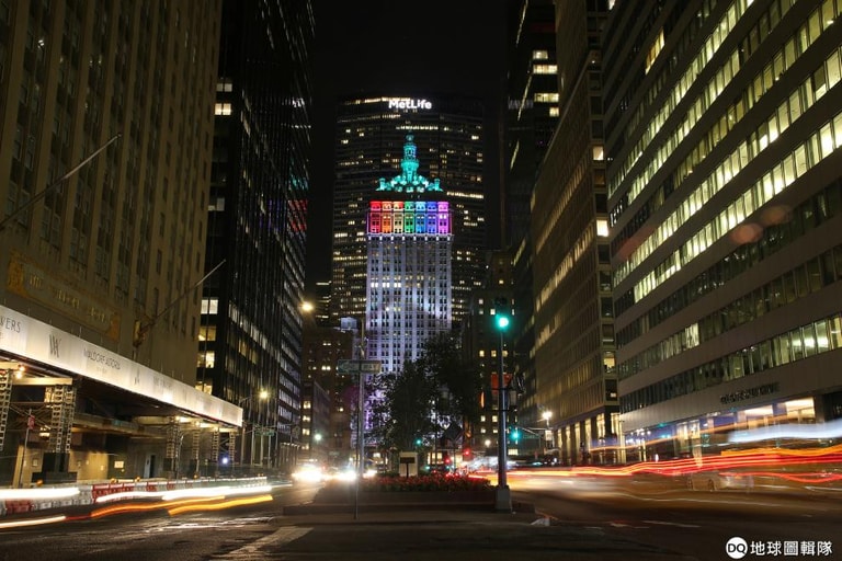 位於紐約曼哈頓中城的漢姆斯利大廈(Helmsley Building)被打上了彩虹燈光,準備迎接石牆暴動(Stonewall riot)五十周年紀念。