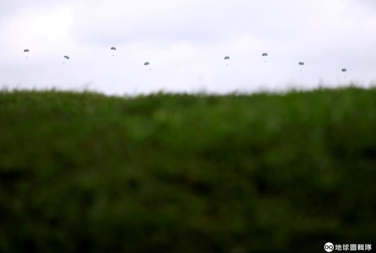 26號這天,新加坡空軍正在進行跳傘訓練,一名名傘兵從空中跳下,在天際成了一個個小黑點。