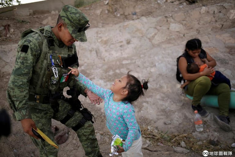 在美墨邊境的華瑞茲城(Ciudad Juarez),被當局派來阻擋移民進入美國境內的墨西哥國家守衛隊隊員,正在和一名小女孩玩耍。這名小女孩本來要和母親與妹妹偷偷進入德州艾爾帕索城(El Paso),沒想到在最後關頭被擋了下來。