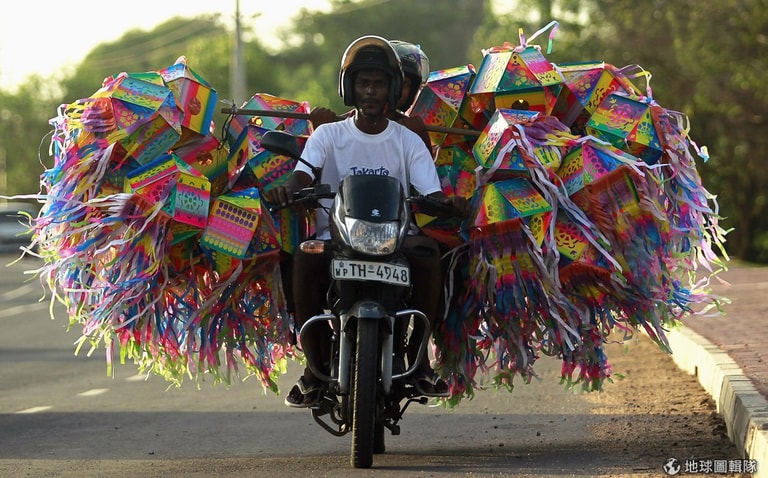 當地即將舉行盛大的「衛塞節」(Vesak Day),活動中會用到的彩色燈籠被商家捆捆準備載去賣。衛塞節主要是慶祝佛祖誕生、悟道、涅槃的大日子。