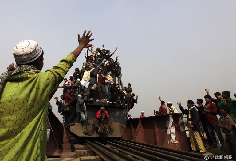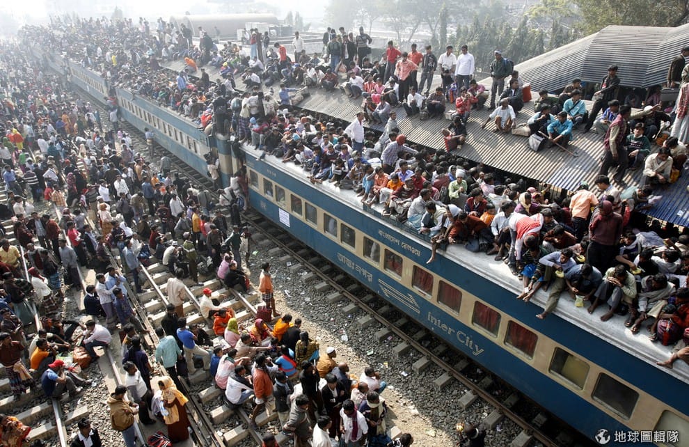參加完替人類祈福的穆斯林代表大會(Bishwa Ijtema)的人們,全擠上火車等著返鄉。