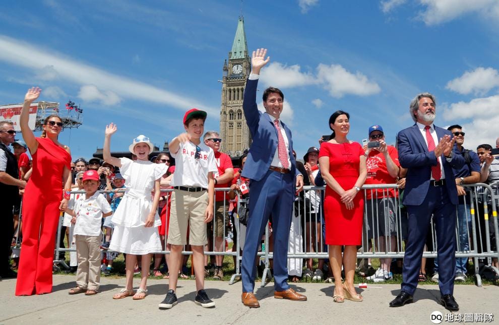 每年的 7月1日是加拿大的國慶日,加拿大總理杜魯道(Justin Trudeau,右三)也在這天攜家帶眷地在渥太華國會山莊前和民眾一起慶祝。
