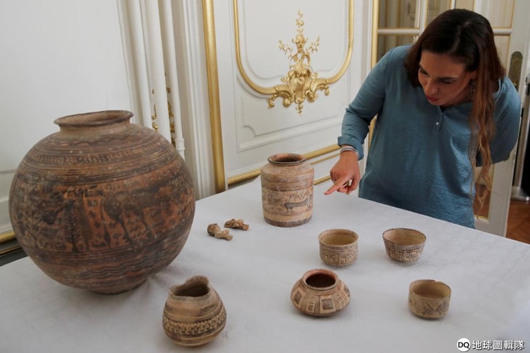 在巴基斯坦駐法國大使館,法國考古學家迪迪耶(Aurore Didier)指著桌上的古物,這些古物加起來總共有 445件,每一件都可以回溯到西元前三到前二世紀。這些古物都是法國海關在 2006-2007年期間沒收的,當局也準備把這些古物還給巴基斯坦。