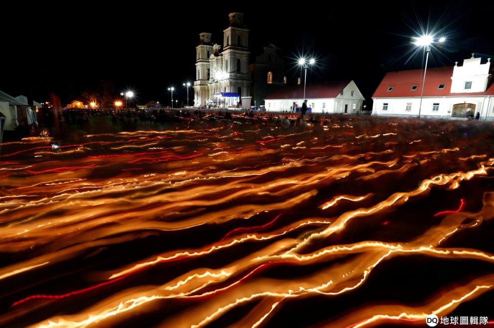天主教信徒們高舉著蠟燭,肅穆地進行著宗教儀式。