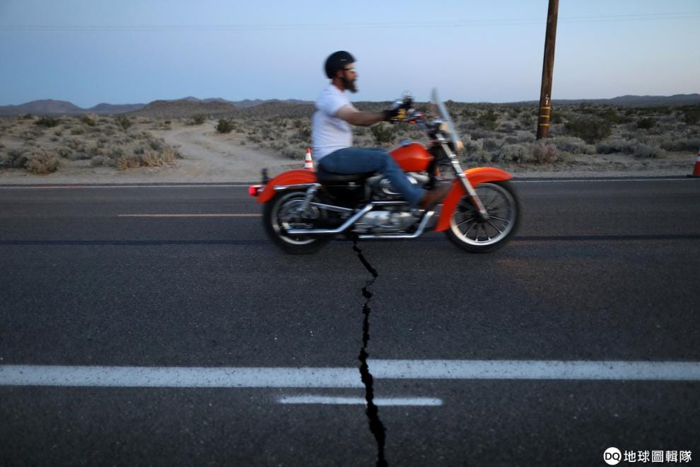 在芮氏規模 6.4的南加州大地震後,畫面中可以看到受到地震影響嚴重的特羅納(Trona)小鎮就連馬路都裂開了。