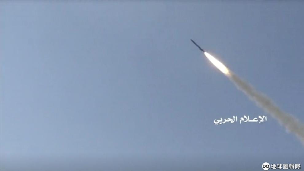 在這張由反政府胡西組織(Houthi)所經營的電視台Al-Masirah所公布的影像中,記錄下胡西組織在葉門發射的巡弋飛彈「Quds」,確切的發射地點並不清楚。