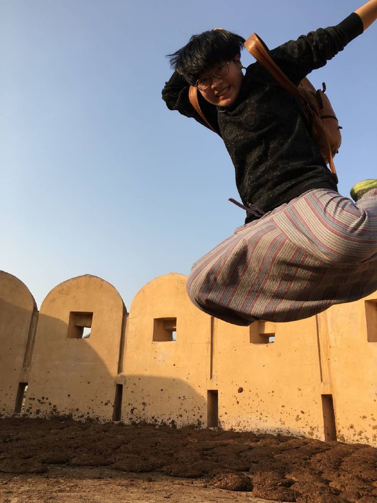 無論是新德里街頭的低矮圍牆還是人行道,此刻都黏著一塊又一塊的咖啡色、被捏成圓形的牛屎——在雨季來臨之前,許多工人正趕忙加工曝曬牛屎。這個產業感覺占盡了優勢,聖牛為他們擋去了所有的責怪與麻煩,大家好像都覺得整個馬路「ㄍㄡˊ丟賽」是件很普通的事⋯⋯我真難理解他們的神聖與清潔概念,宗教和神明就是這麼一回事吧,少談科學。