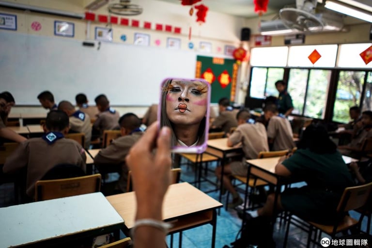 每到學校,就能看到米沙特在辦公室仔細地梳妝打扮,在《路透社》記者來訪的這一天,米沙特正在把自己打扮成韓團BLACKPINK的成員Lisa,只見他畫上充滿戲劇風格的眉毛、嘴唇等等,再戴上超長眼睫毛跟銀色假髮後,就會以走台步的姿態走進教室上課。