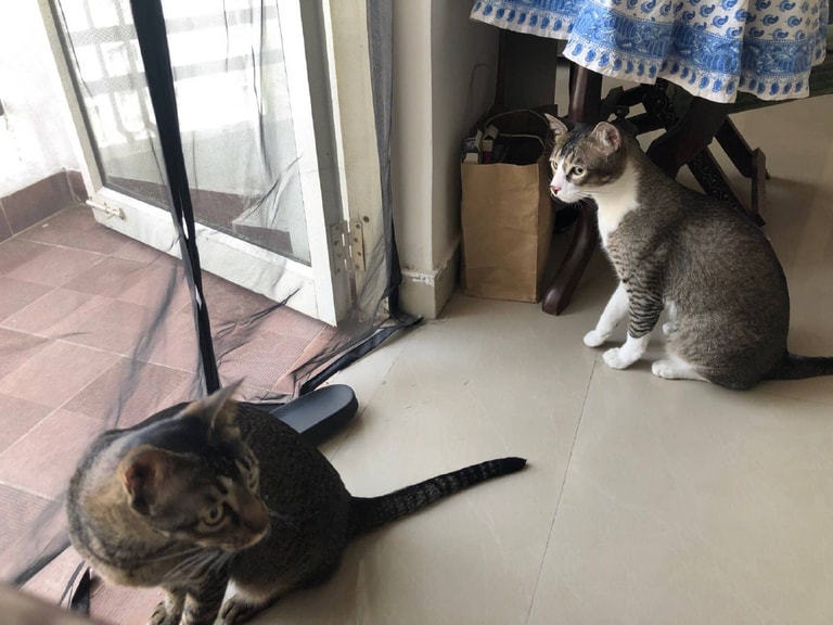 兩年半前,K 在路邊的一個塑膠袋裡發現牠們,細心照養後卻在近期突然對貓過敏,只能無奈將牠們送養。「可以請妳讓牠們繼續住在室內嗎?」K 的太太小心翼翼地問我,畢竟,在印度要找到有心養貓的人不易,要找到願意領養兩隻室內貓的人更是困難。