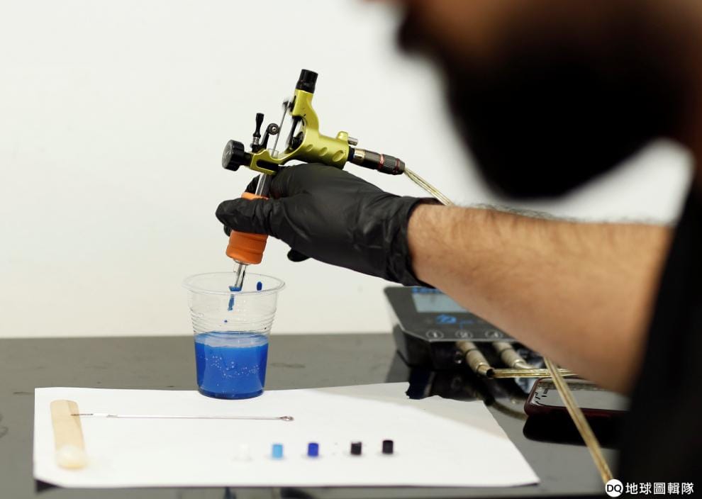 在一家位於巴格達(Baghdad)的刺青店,一名刺青師正在清洗手上的刺青筆,忙著幫客人刺上屬意的圖案。