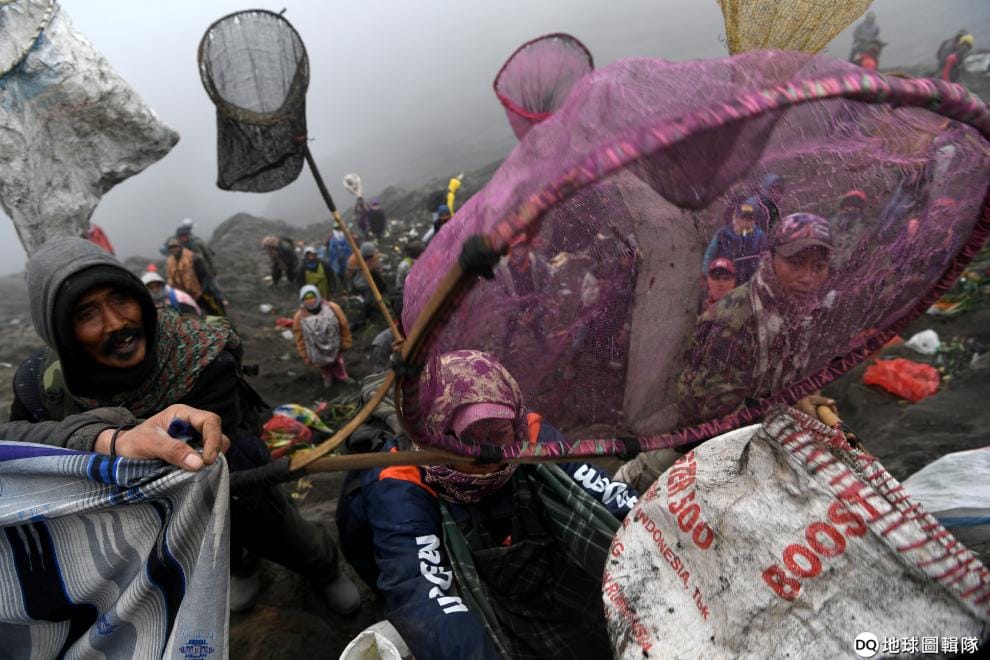 適逢卡沙達節(Kasada Festival),印度教信徒來到布羅莫(Bromo)火山,將各式各樣的蔬菜從山上拋下,請神明保佑眾人平安幸福,畫面的另一端,則是山下的人們張開網子,想要把代表好運的祭品通通接下來。