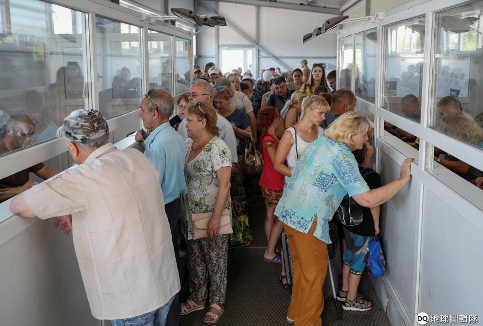 這裡是反政府軍所控制的地區馬約斯基(Mayorsk),根據《路透社》報導,每年都有超過 100萬人希望能穿過這條管制線、前往烏克蘭政府管制的那一端,因為如此一來,他們才有辦法領到各式各樣的國家補助。