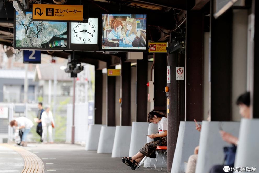 在靠近京都動畫「京阿尼」第一工作室,由京阿尼所出品的動畫被展示在車站的廣告看板上。