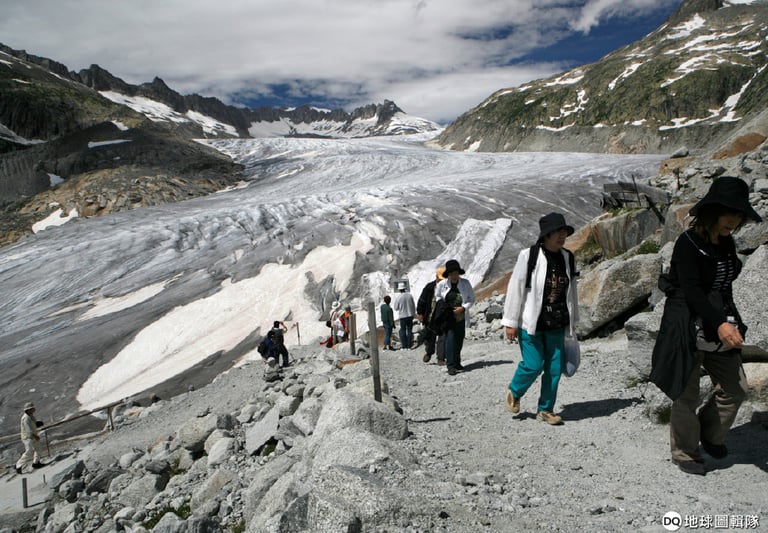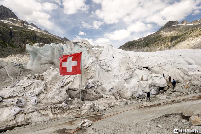 來到瑞士南部的隆河冰河(Rhône Glacier),從 2010年開始,就有 8名瑞士人會在春夏之際穿梭於此,幫冰河蓋上白色毯子。