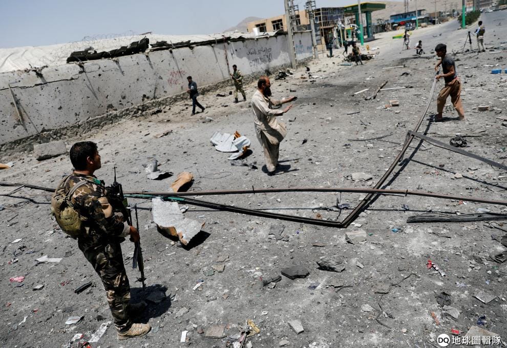在首都碦布爾(Kabul),維安人員正在調查遭到炸彈攻擊的區域。25號這天,當地有三處遭到炸彈攻擊,造成至少 15人死亡。隨後,塔利班(Taliban)和伊斯蘭國(IS)出現聲稱自己是兇手,然而當局沒有證實。