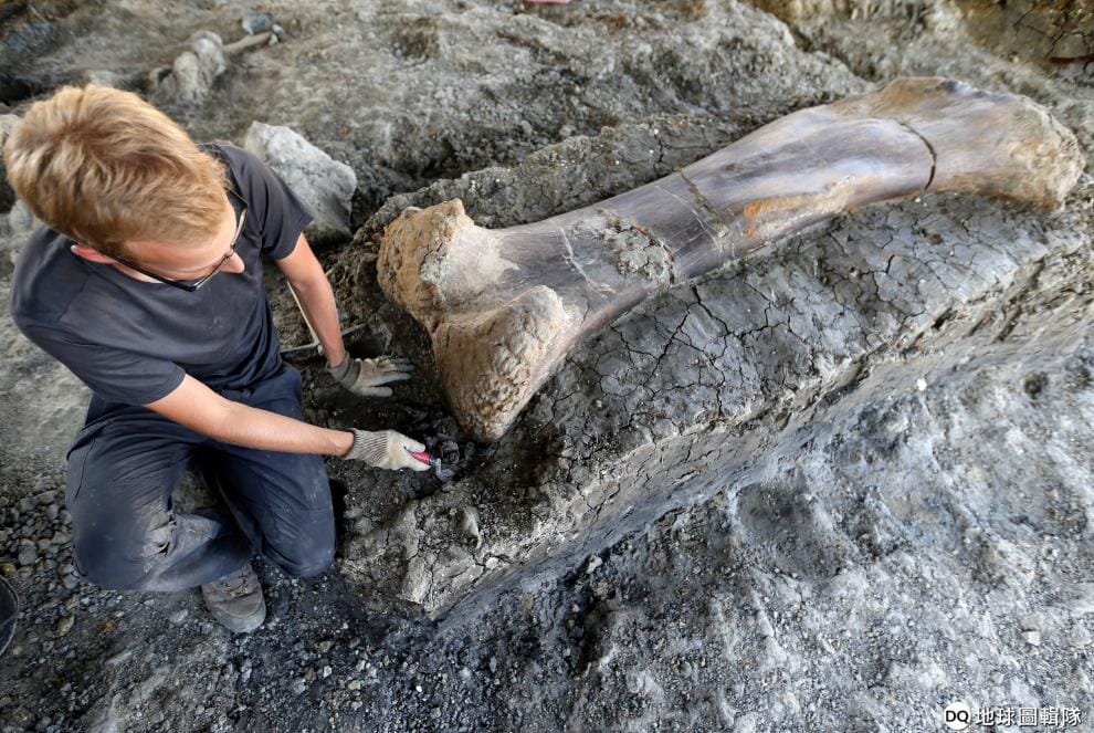 在西部市鎮昂雅克沙朗特(Angeac-Charente),一名古生物學家正在檢視剛剛出土的恐龍化石。