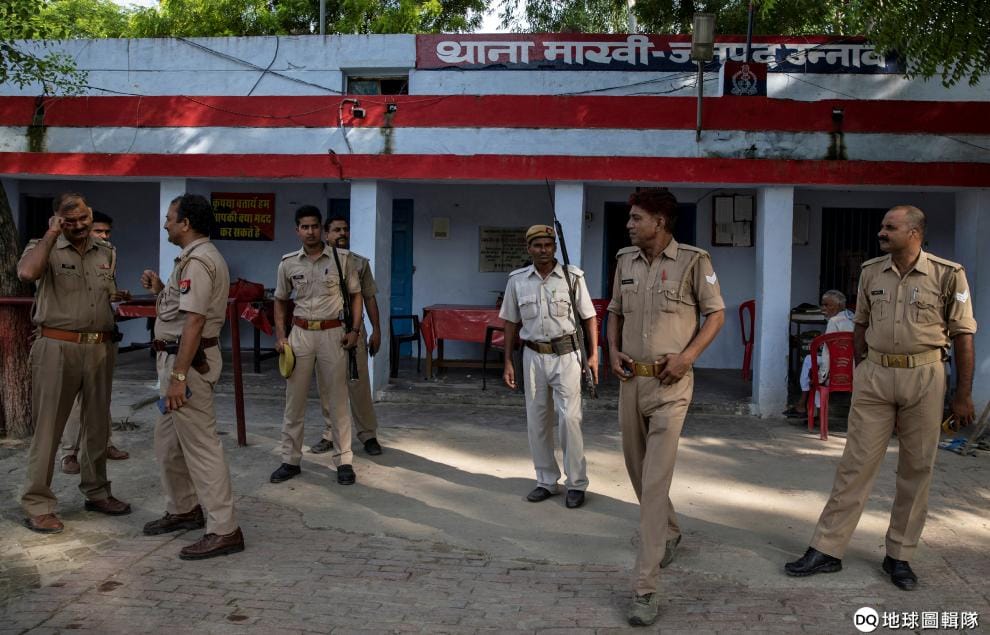 在北方邦烏納奧縣的馬凱(Makhi)警局內,警察三三兩兩地站著,先前為了性侵案替女兒討公道的父親被拘留在這間警局後死亡。這名父親的女兒在上周末於高速公路上出了致命車禍,目前命在旦夕。先前,她曾公開指控隸屬於印度人民黨(Bharatiya Janata Party,BJP)的北方邦議員森加(Kuldeep Singh Sengar)性侵她,但沒有獲得妥善回應。