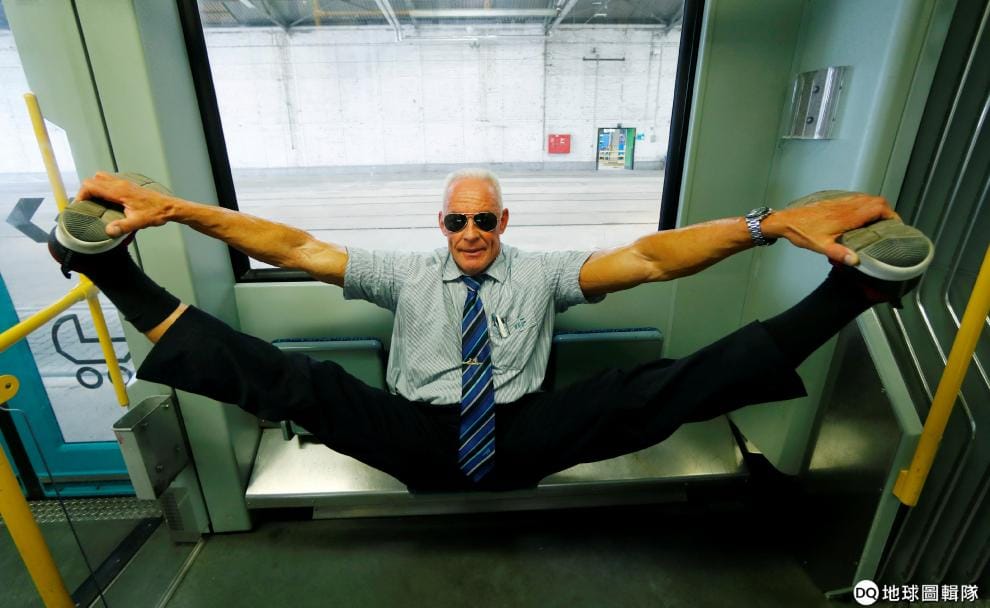 在法蘭克福的電車上,熱愛健身的電車駕駛沃斯(Peter Wirth)向鏡頭展現他柔軟的身段。
