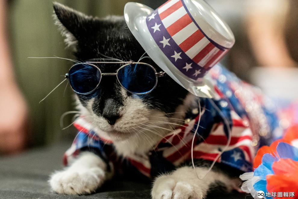 在紐約市曼哈頓中城區的阿爾岡昆酒店(Algonquin Hotel),準備參加年度貓咪時裝秀的貓咪們正在後台準備。其中,一隻穿著美國星條旗裝的貓咪特別吸睛。