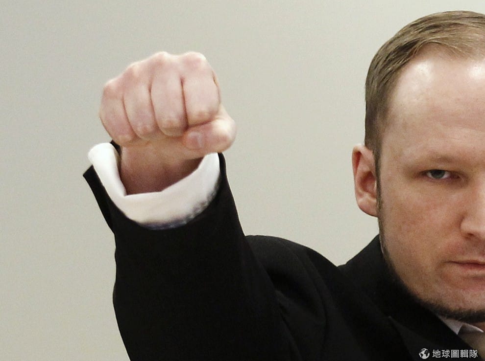 照片中舉起右手在胸前的就是犯下屠殺案的布列維克。