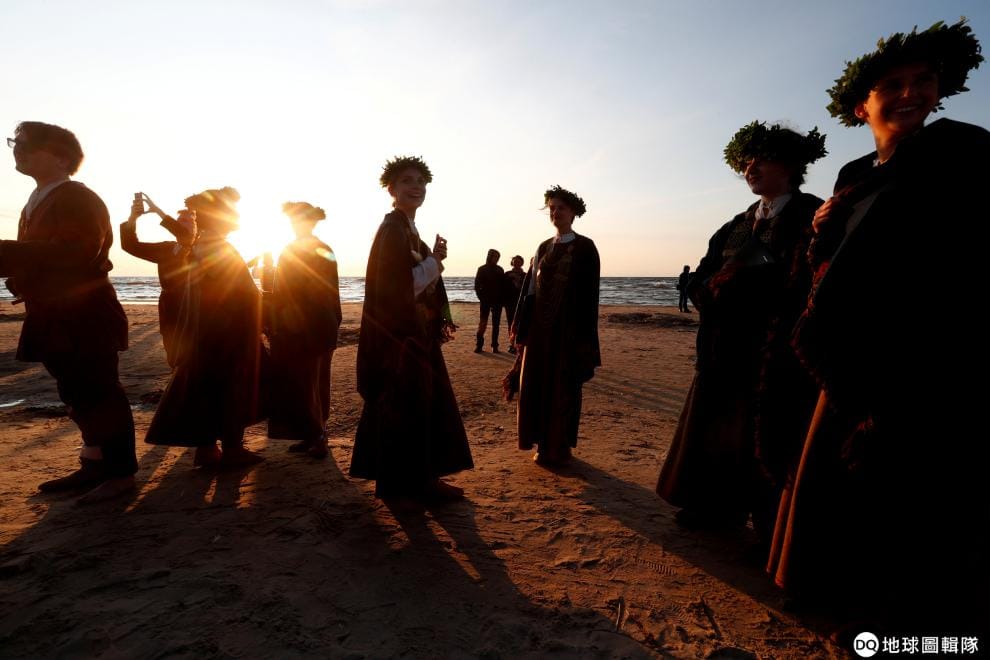 人們身穿傳統服飾高歌著,他們稍後將點起火炬、進行頌揚海洋之母(Mierjema)的儀式。