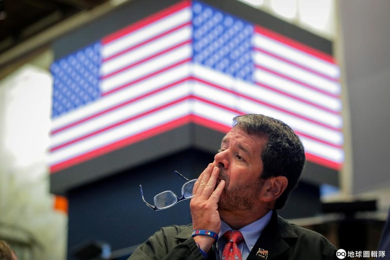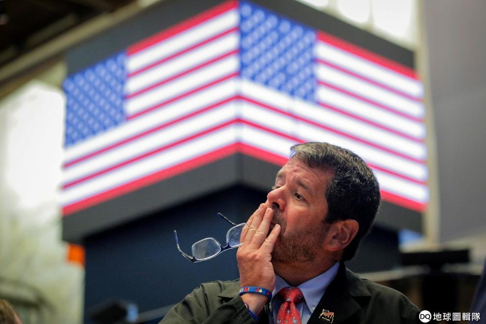 在紐約證券交易所裡,一名交易員苦惱地看著眼前的股市資訊。
