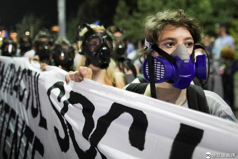 羅馬尼亞—帶著防毒面具來抗議