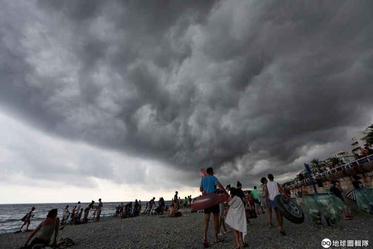 面對暴風雨逼近,人們陸陸續續離開了烏雲密佈的海灘。
